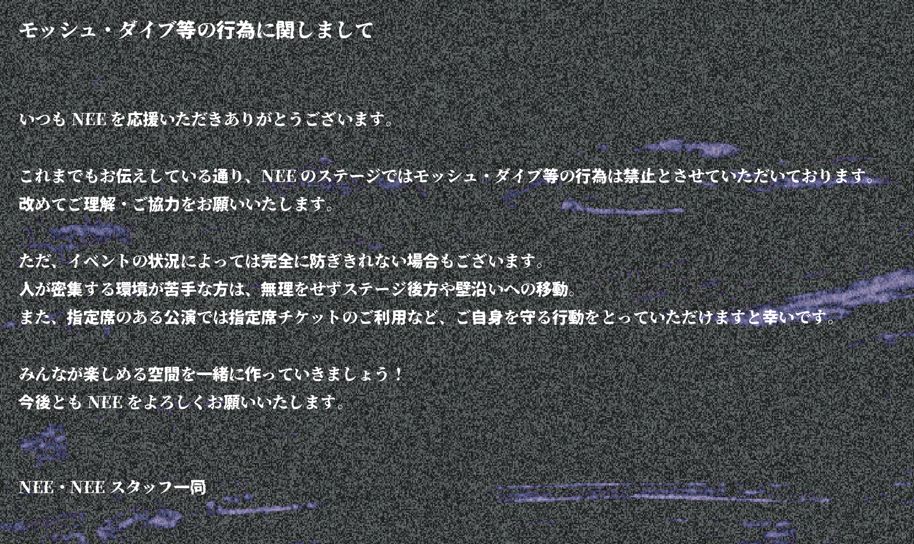 モッシュ・ダイブ等の行為に関しまして | NEE オフィシャルサイト